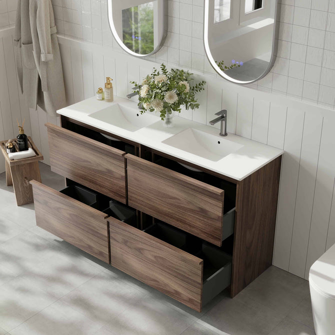 The Bella 1500mm Freestanding Vanity is a stunning centrepiece for expansive bathrooms, combining maximum storage and design flexibility. Featuring four DTC soft-close drawers, it accommodates single or double cabinet basins or can be elevated with a stone top and countertop basins for a luxurious finish.