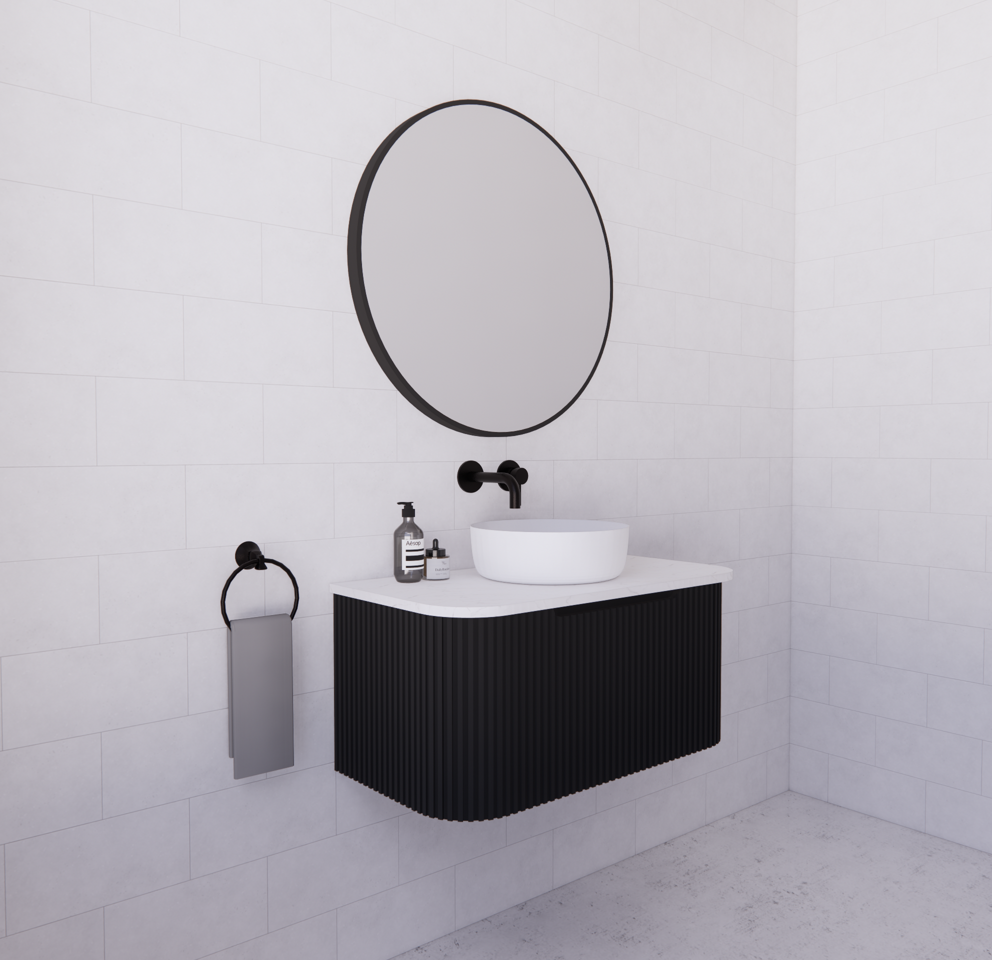 Bella 900mm Curved Matte Black Fluted Groove Wall Hung Vanity