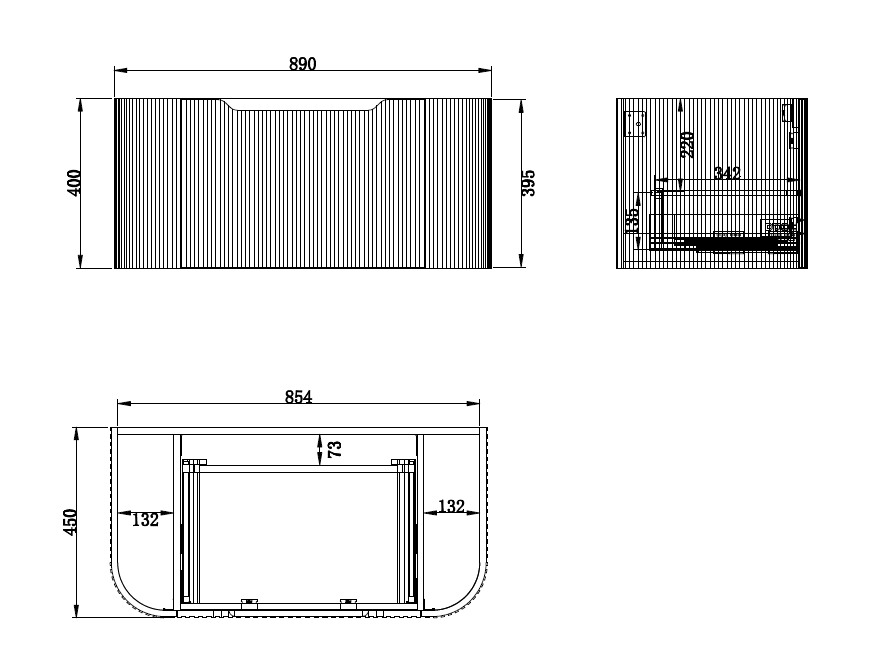 • Cabinet dimensions: 890mm x 450mm x 400mm