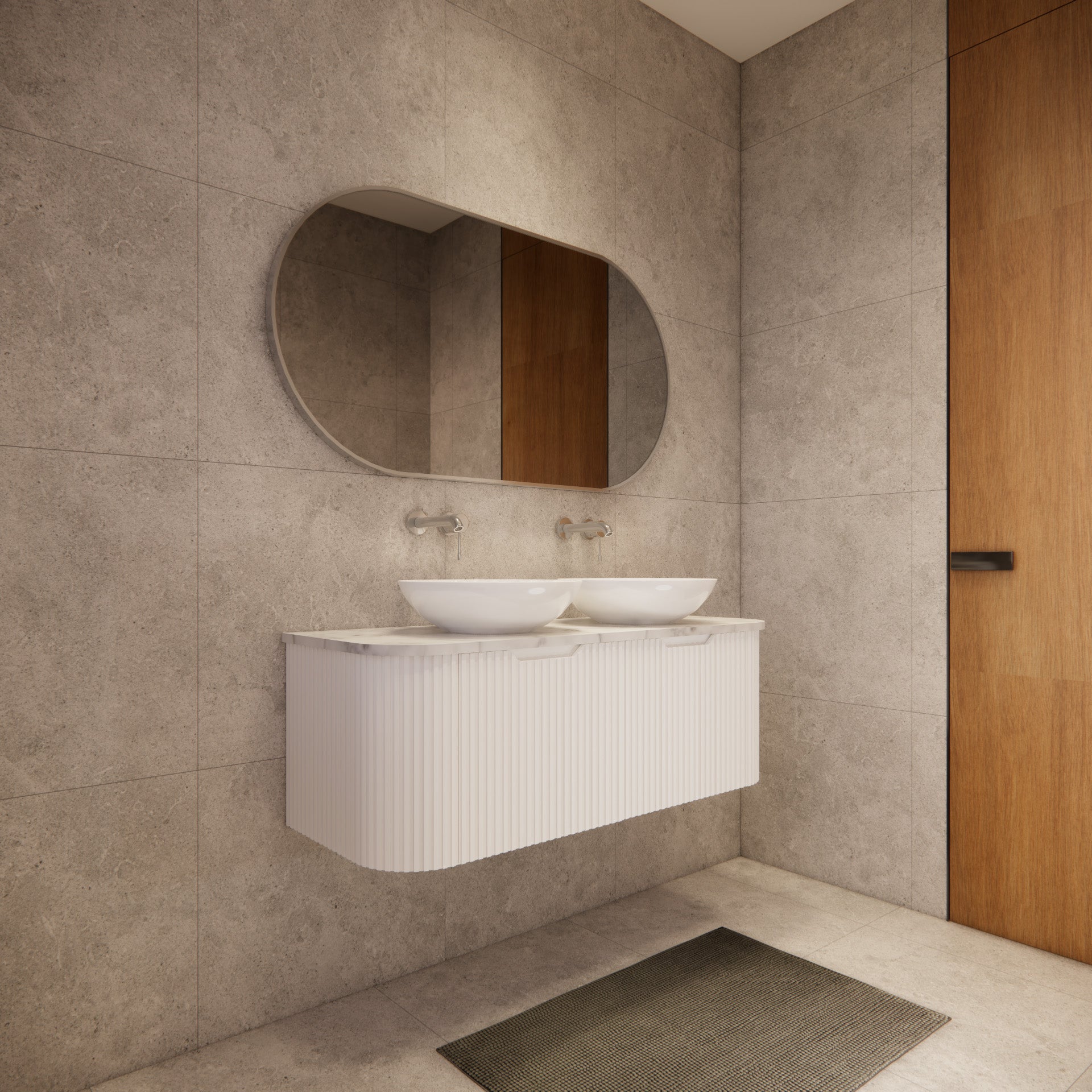 Bella | Curve Matte White 1200mm Fluted Groove Double Bowl Wall Hung Vanity