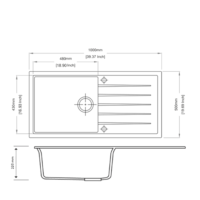 Overall Dimensions(LxWxH): 1000*500*220mm