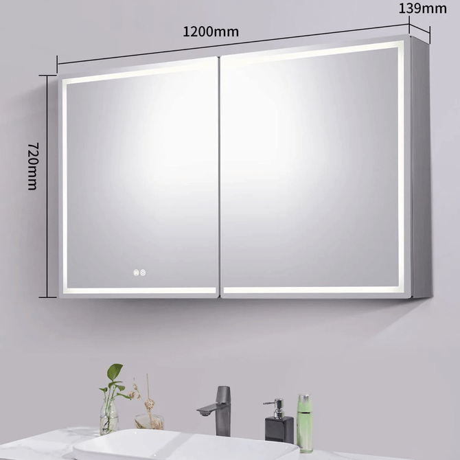 1200*720*139mm Silver Brushed Rectangular LED Mirror Shaving Cabinet(Double Doors,Anti-Fogging)