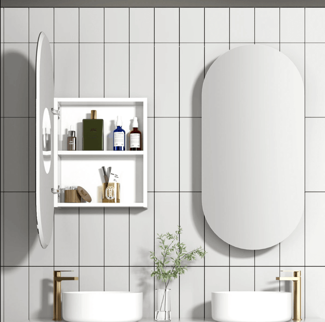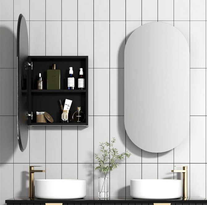 900x450mm Pill Shaped Shaving Cabinet Matte Black