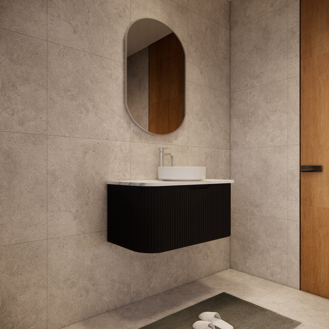 Bella 900mm Curved Matte Black Fluted Groove Wall Hung Vanity