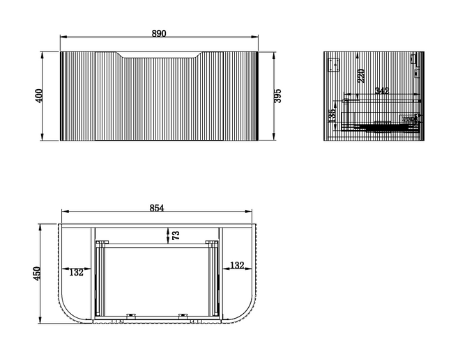 • Cabinet dimensions: 890mm x 450mm x 400mm