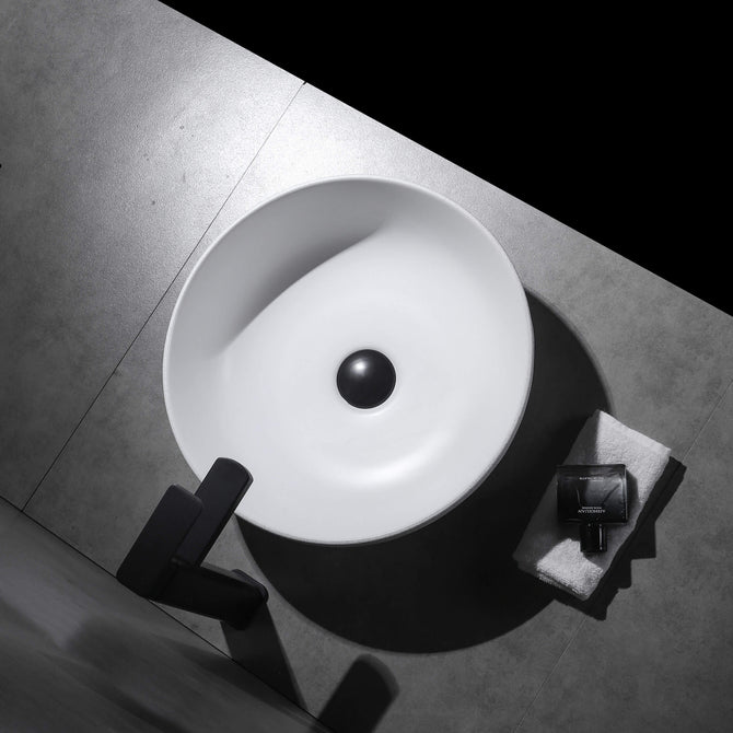 The Claya Wavy Texture Round Above Counter Basin is available in both matte white and matte black finishes, allowing you to choose the perfect match for your bathroom decor.