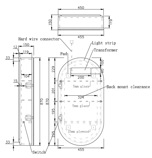 Introduce a touch of modern elegance to your bathroom with our Designer LED Shaving Cabinet. This beautifully crafted oval-shaped cabinet, finished in a sleek matte black, brings a sense of sophistication and style to any space.