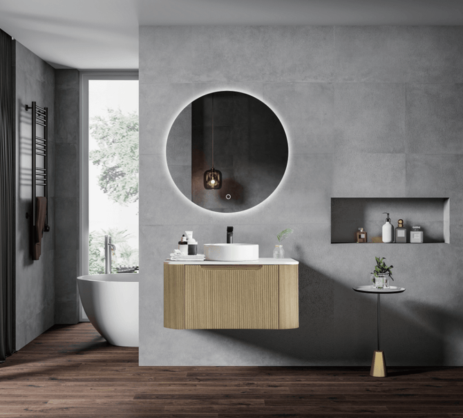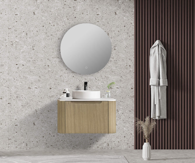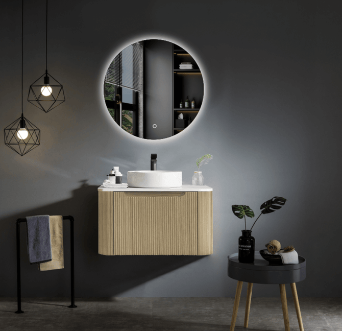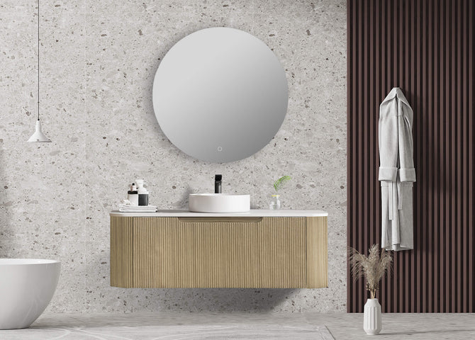 Discover the Rome Bur Oak Fluted Wall-Hung Vanity, a stylish and functional addition to any bathroom.