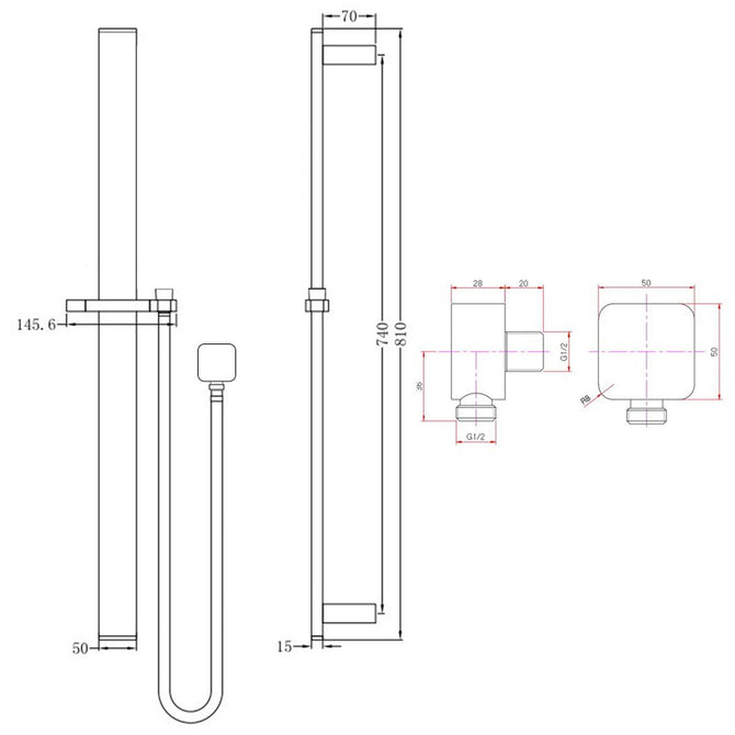 -Shower Rail: 304 stainless steel