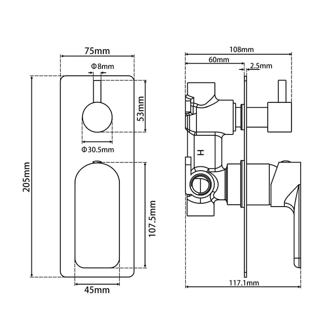 VOG Series Solid Brass Black Bath/Shower Wall Mixer with Diverter Wall Mounted